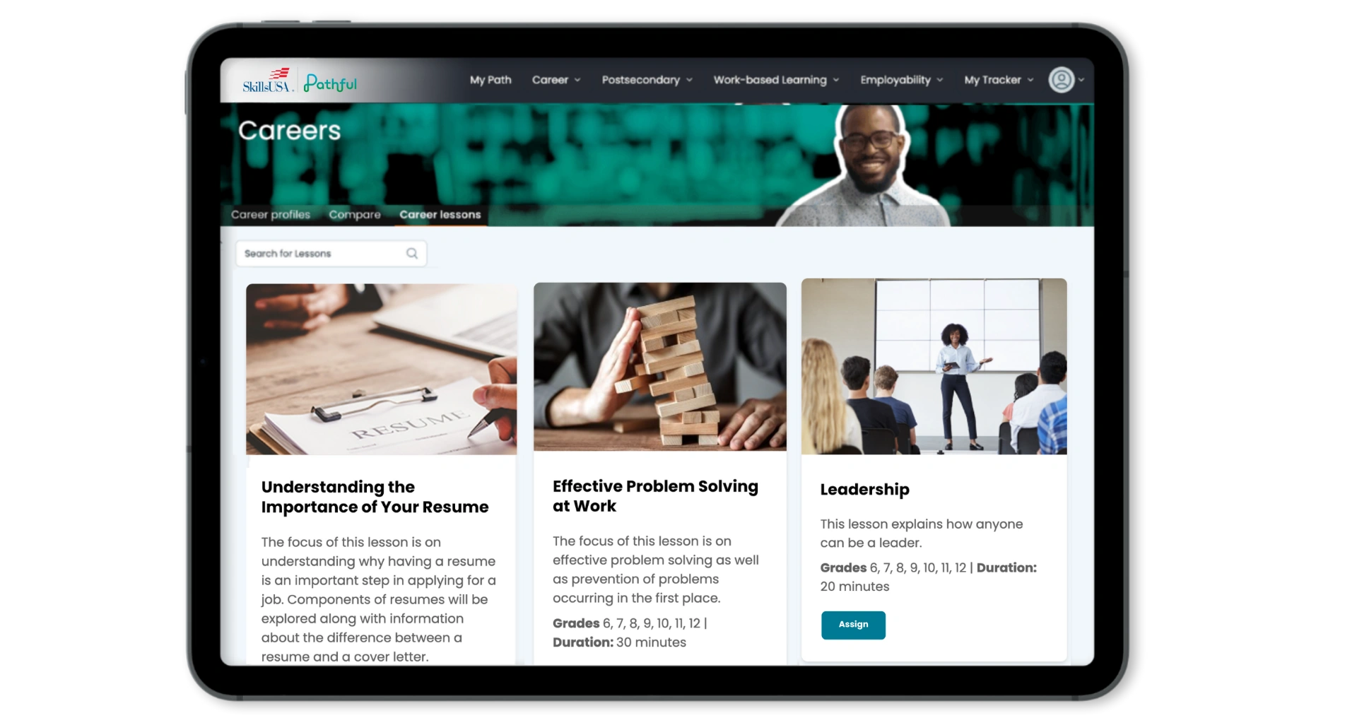 SkillsUSA Pathful is your all-in-one career exploration and workforce readiness platform. It connects students with real professionals, virtual job shadows, and industry resources to build skills and prepare for future success.